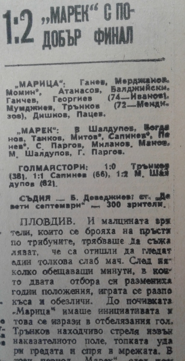 «Марица» Пловдив - «Марек» Станке-Димитров - 1:2