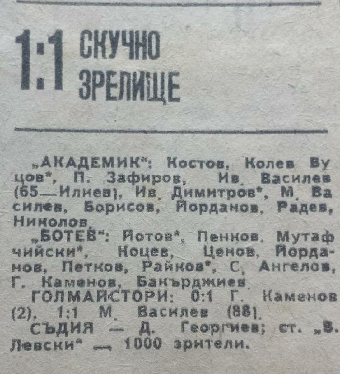 «Академик» София - «Ботев» Враца - 1:1