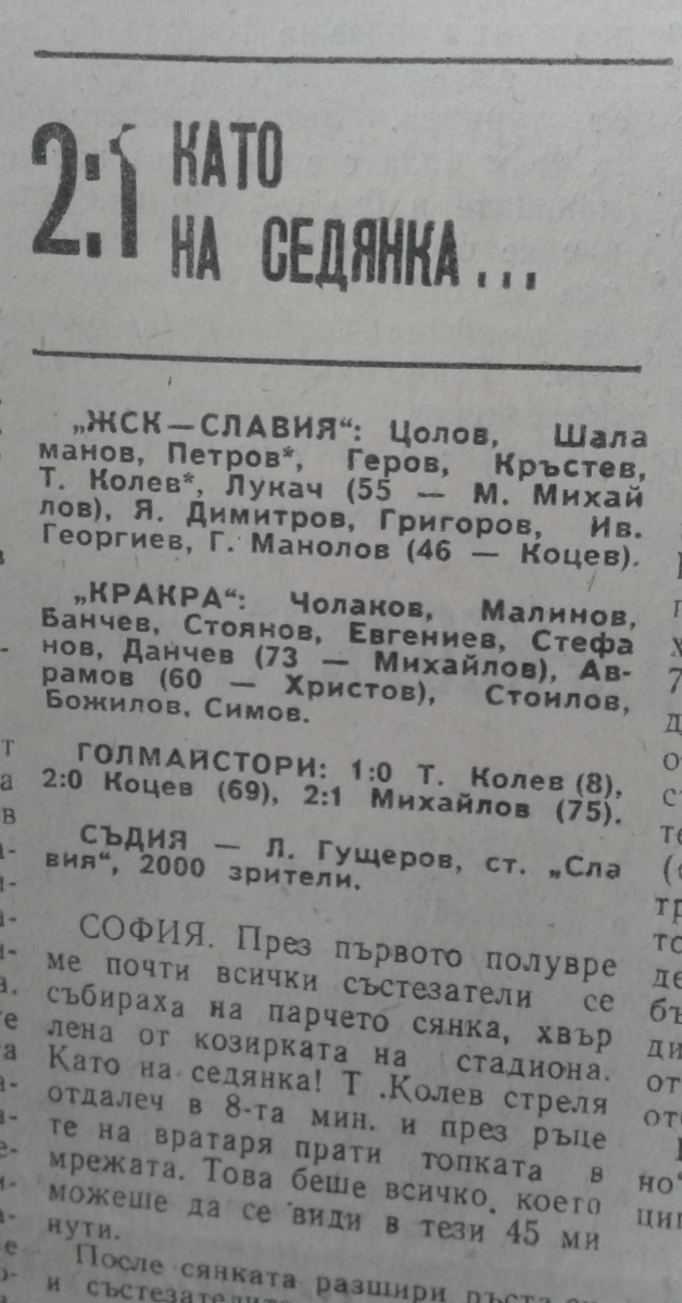 «ЖСК Славия» София - «Кракра-Пернишки» Перник - 2:1