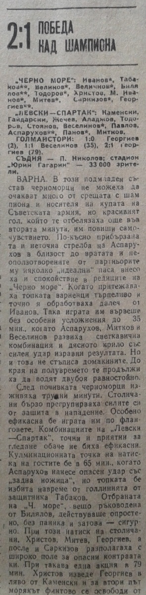 «Черно море» Варна - «Левски-Спартак» София - 2:1