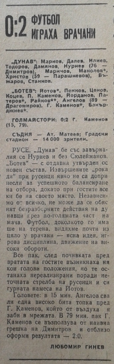 «Дунав» Русе - «Ботев» Враца - 0:2
