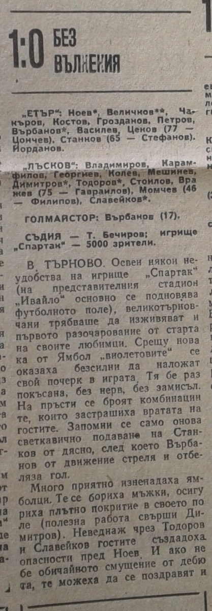 «Этыр» Велико-Тырново - «Николай Лысков» Ямбол - 1:0