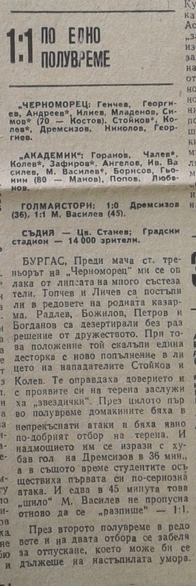 «Черноморец» Бургас - «Академик» София - 1:1