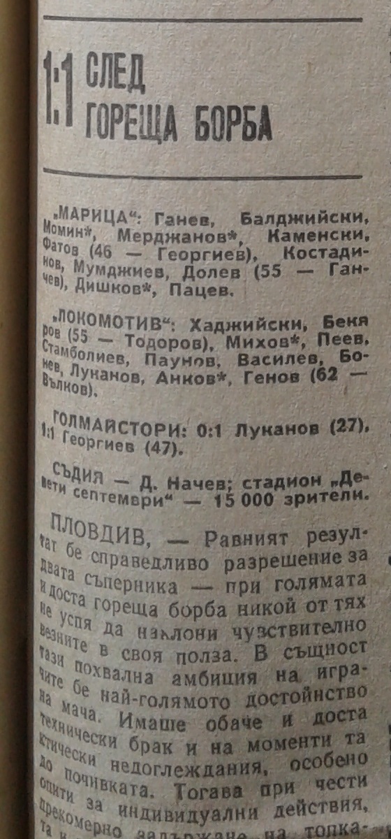 «Марица» Пловдив - «Локомотив» Пловдив - 1:1