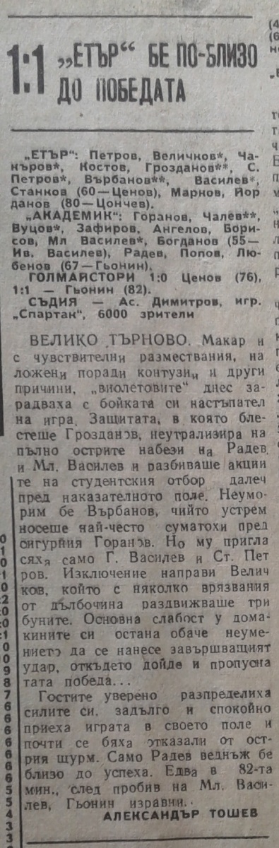 «Этыр» Велико-Тырново - «Академик» София - 1:1