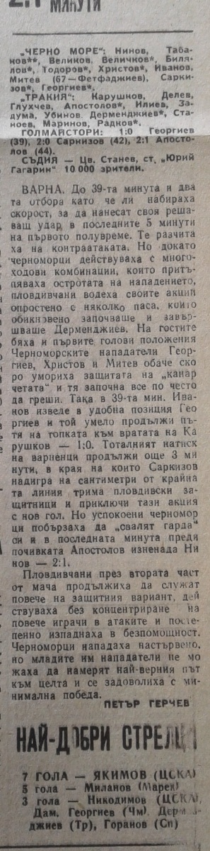 «Черно море» Варна - «Тракия» Пловдив - 2:1
