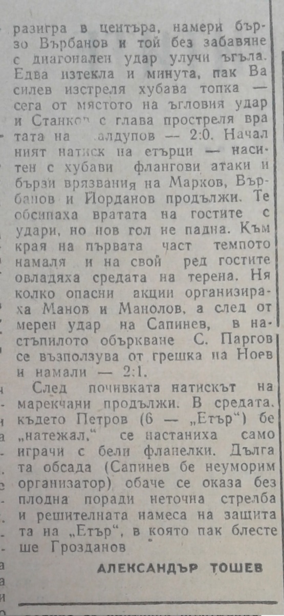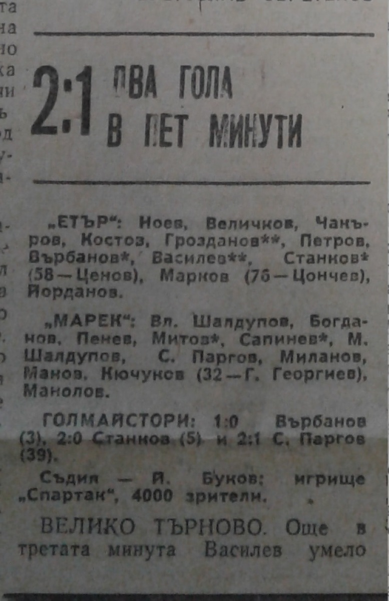 «Этыр» Велико-Тырново - «Марек» Станке-Димитров - 2:1