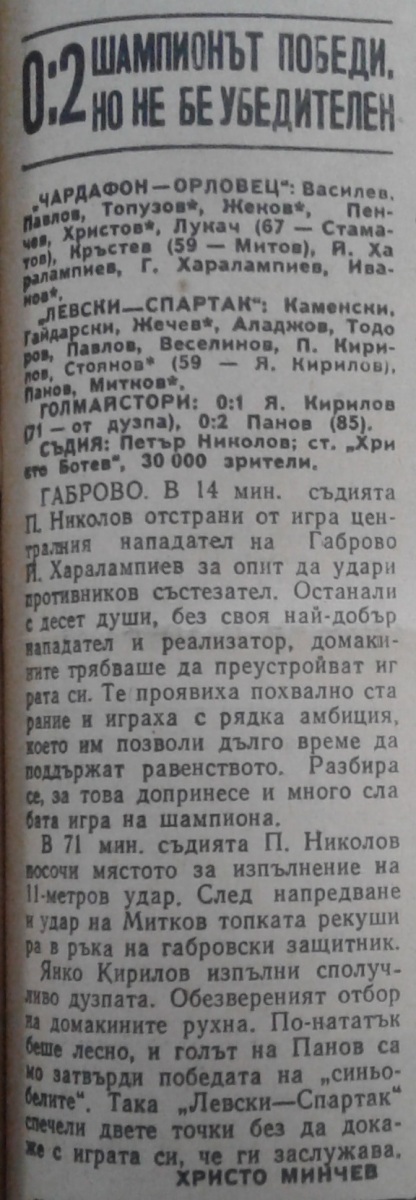 «Чардафон-Орловец» Габрово - «Левски-Спартак» София - 0:2