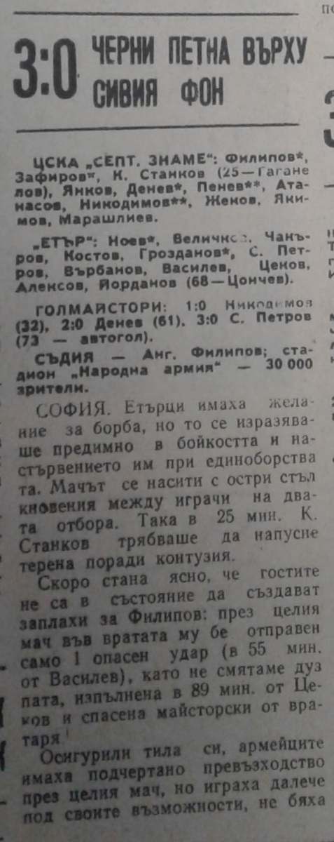 «ЦСКА Септемврийско Знаме» София - «Этыр» Велико-Тырново - 3:0