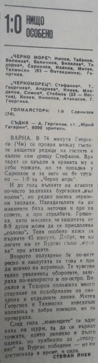 «Черно море» Варна - «Черноморец» Бургас - 1:0