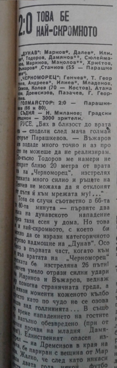 «Дунав» Русе - «Черноморец» Бургас - 2:0