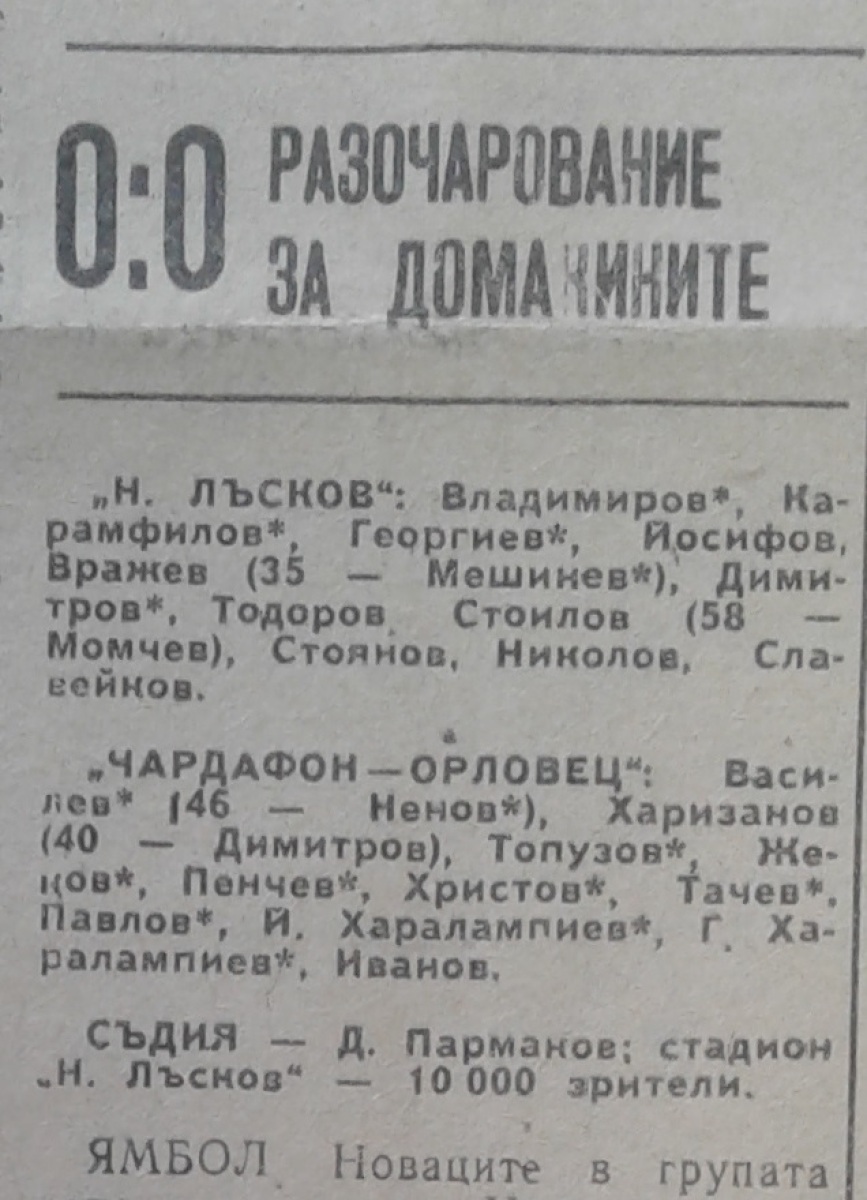 «Николай Лысков» Ямбол - «Чардафон-Орловец» Габрово - 0:0