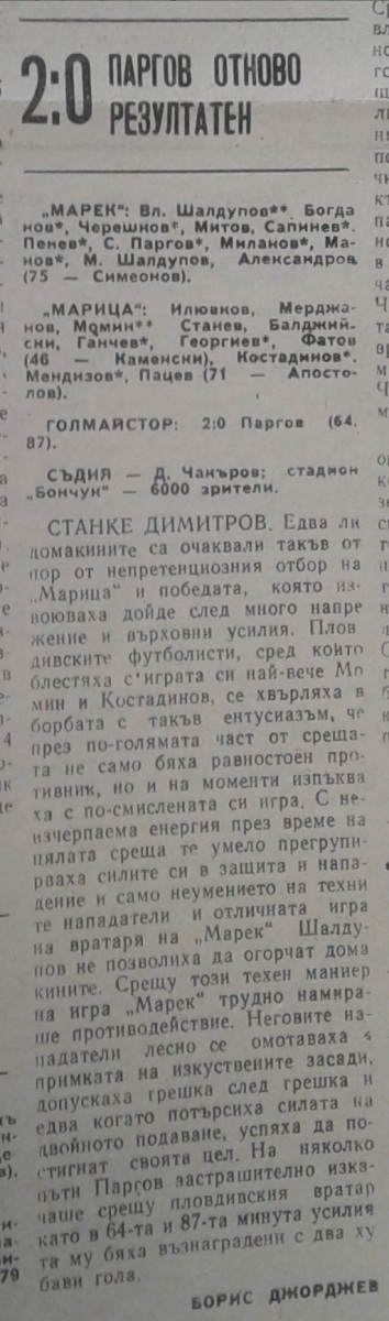 «Марек» Станке-Димитров - «Марица» Пловдив - 2:0