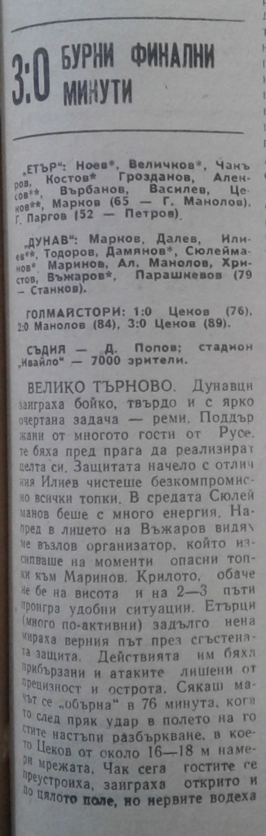 «Этыр» Велико-Тырново - «Дунав» Русе - 3:0