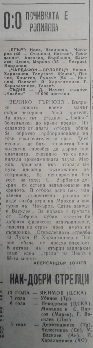 «Этыр» Велико-Тырново - «Чардафон-Орловец» Габрово - 0:0