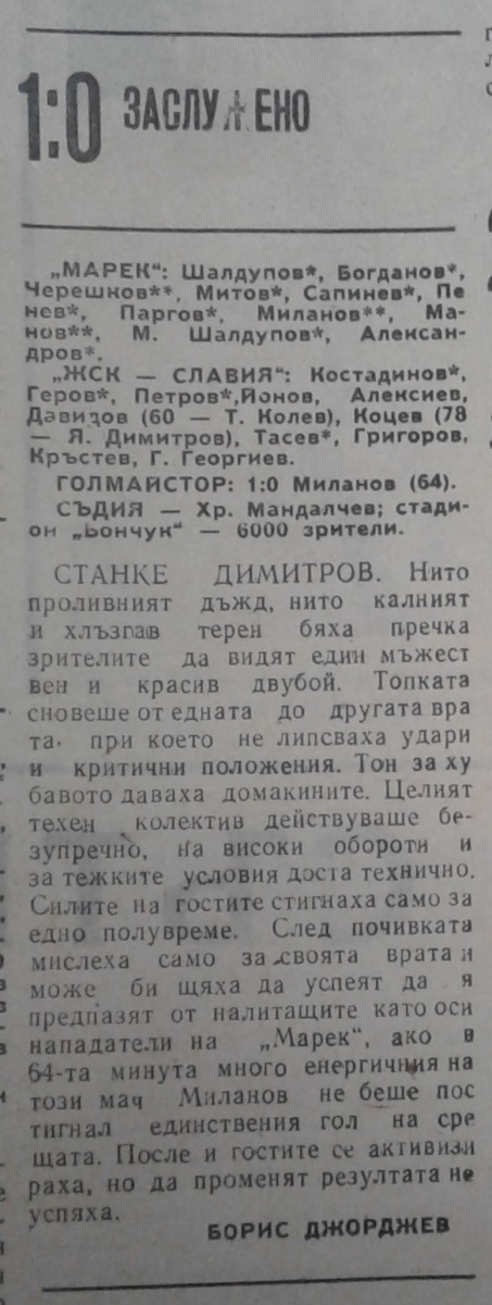 «Марек» Станке-Димитров - «ЖСК Славия» София - 1:0
