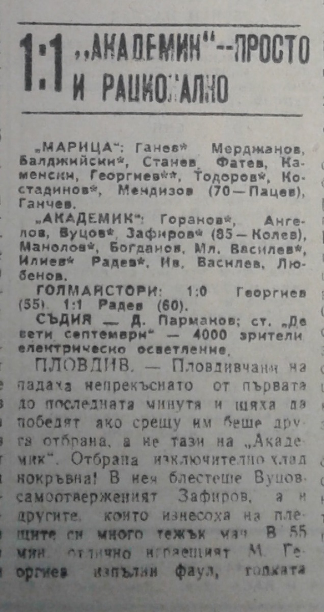 «Марица» Пловдив - «Академик» София - 1:1
