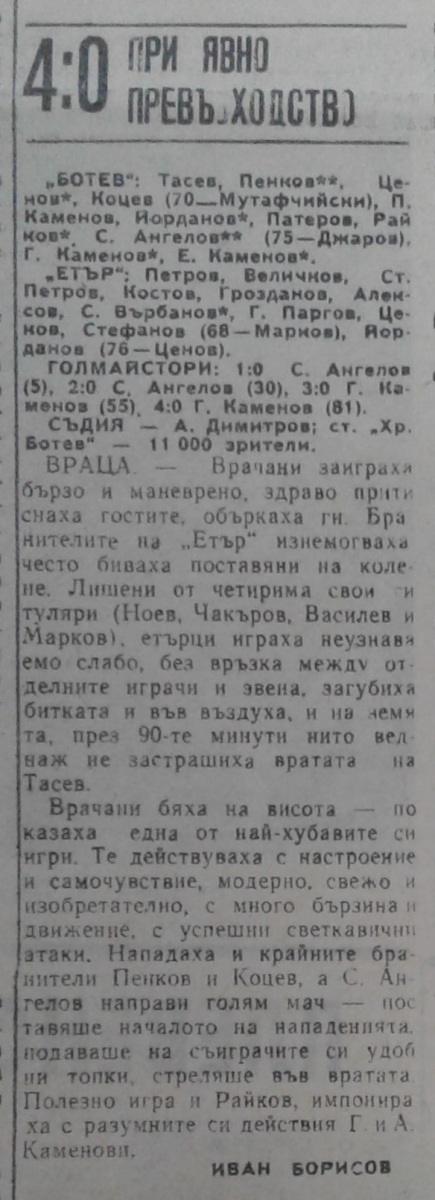 «Ботев» Враца - «Этыр» Велико-Тырново - 4:0