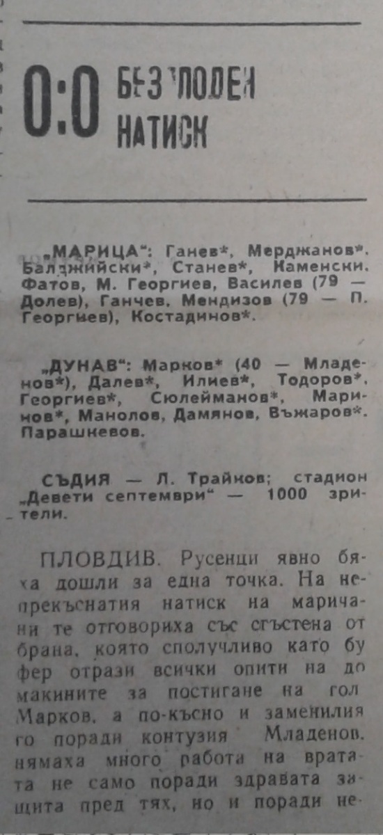 «Марица» Пловдив - «Дунав» Русе - 0:0