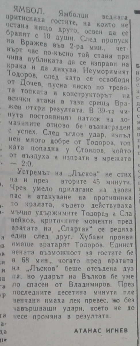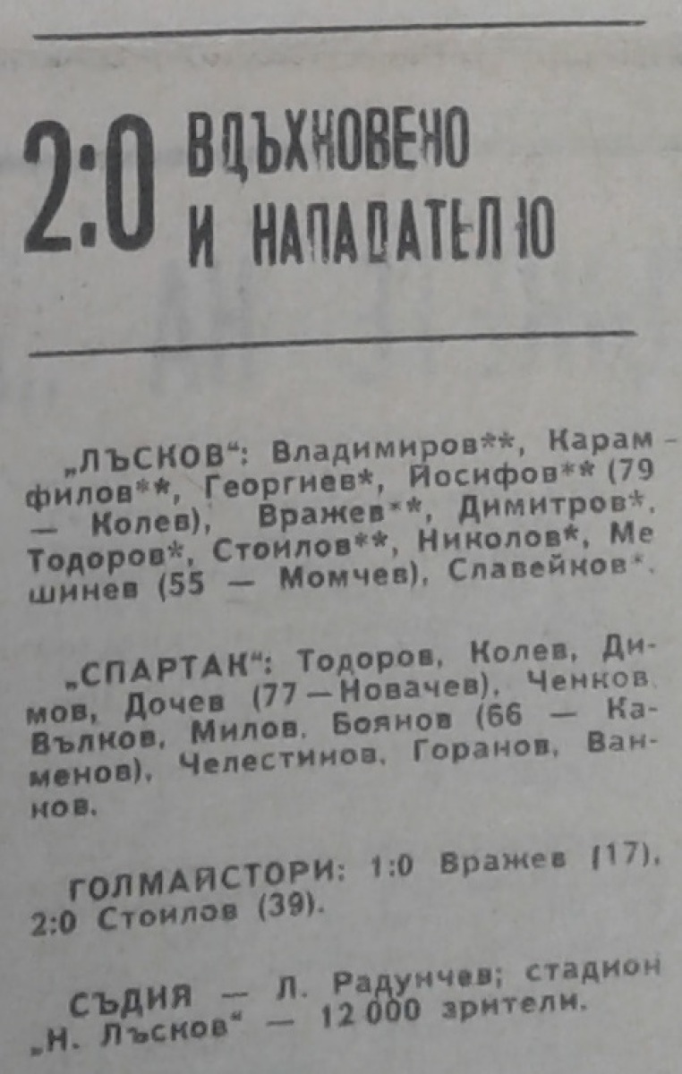 «Николай Лысков» Ямбол - «Спартак» Плевен - 2:0