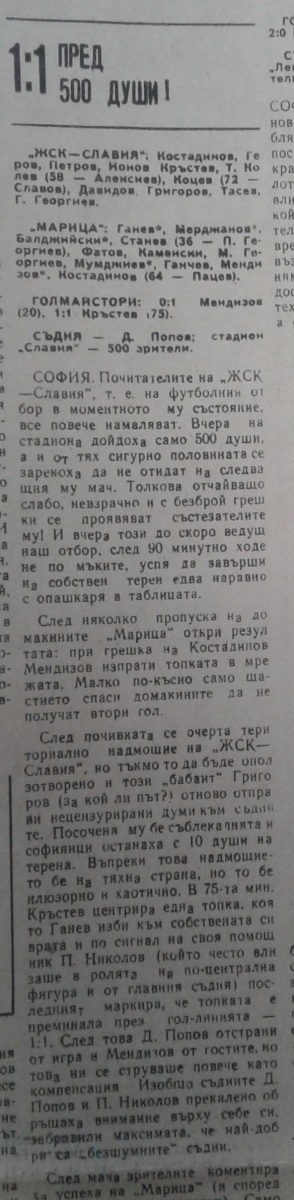 Петар Петров (ЖСК-Славия) сыграл свой 200-й матч в А РФГ. Славов (ЖСК-Славия) дебютировал в А РФГ (из юнош. команды).