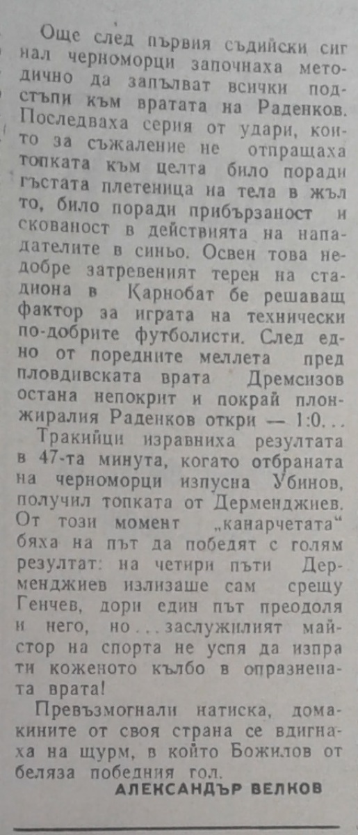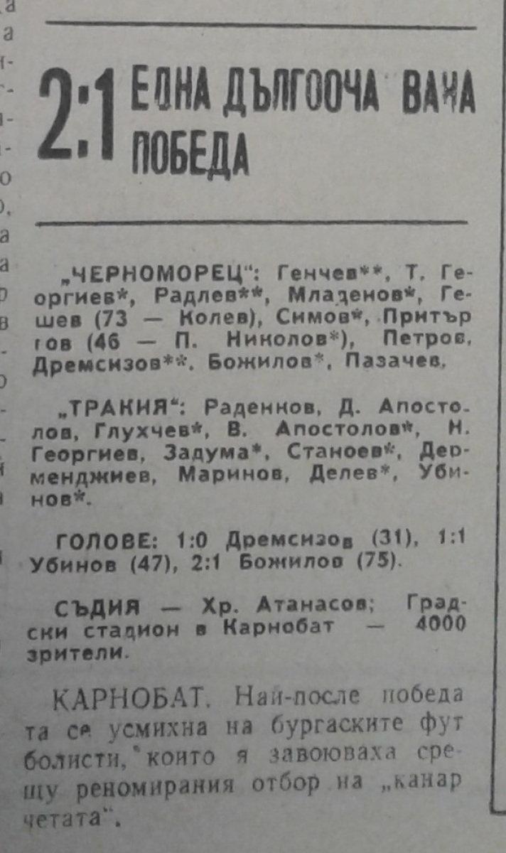 Из за недисцип. поведения своих болельшиков в матче с \«Левски-Спартак\» (София), \«Черноморец\» проводил свой домашний матч в г. Карнобат в 43 км от Бургаса.
