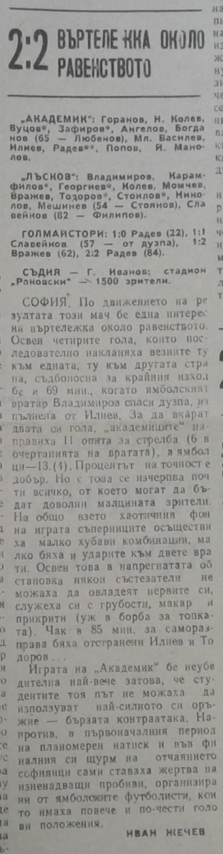 «Академик» София - «Николай Лысков» Ямбол - 2:2