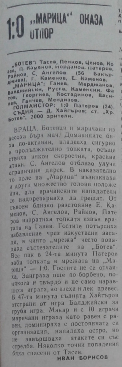 «Ботев» Враца - «Марица» Пловдив - 1:0