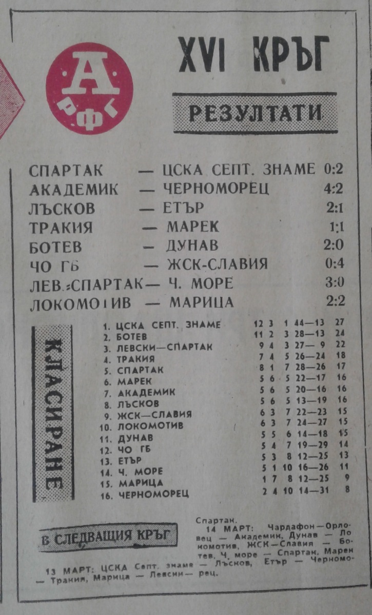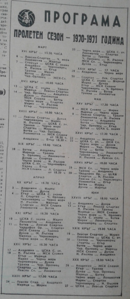 Чемпионат Болгарии 1970/71. Группа А