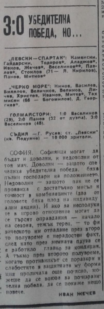 «Левски-Спартак» София - «Черно море» Варна - 3:0