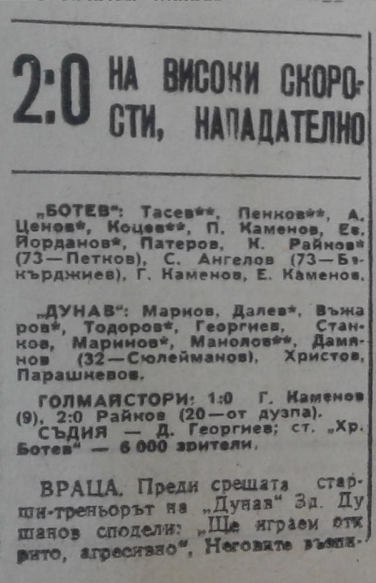 «Ботев» Враца - «Дунав» Русе - 2:0