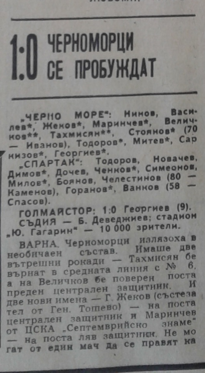 «Черно море» Варна - «Спартак» Плевен - 1:0