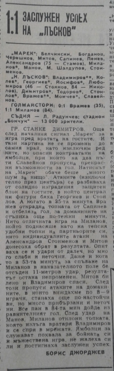 «Марек» Станке-Димитров - «Николай Лысков» Ямбол - 1:1