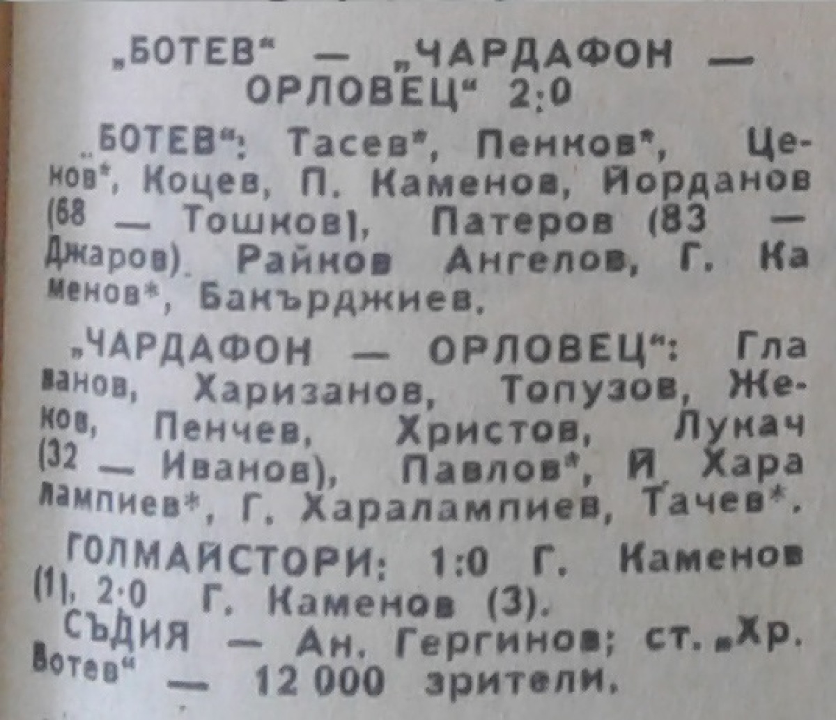 «Ботев» Враца - «Чардафон-Орловец» Габрово - 2:0