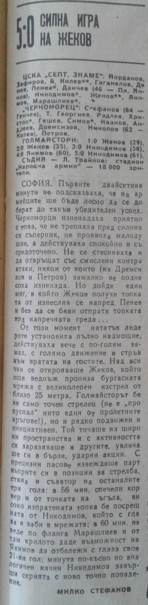«ЦСКА Септемврийско Знаме» София - «Черноморец» Бургас - 5:0