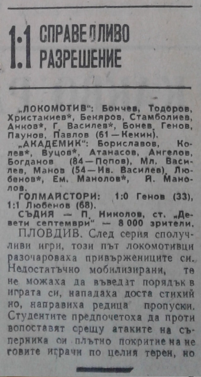 «Локомотив» Пловдив - «Академик» София - 1:1