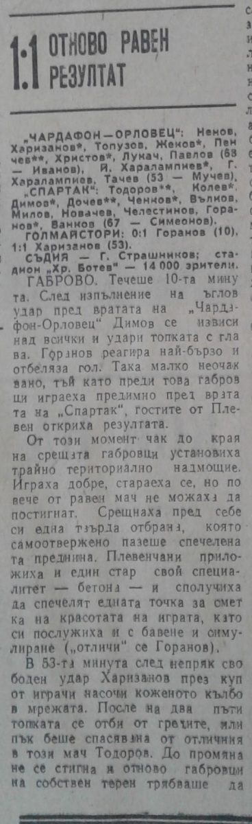 «Чардафон-Орловец» Габрово - «Спартак» Плевен - 1:1
