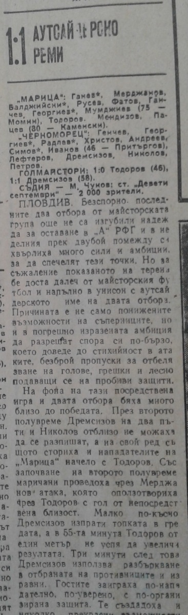 «Марица» Пловдив - «Черноморец» Бургас - 1:1