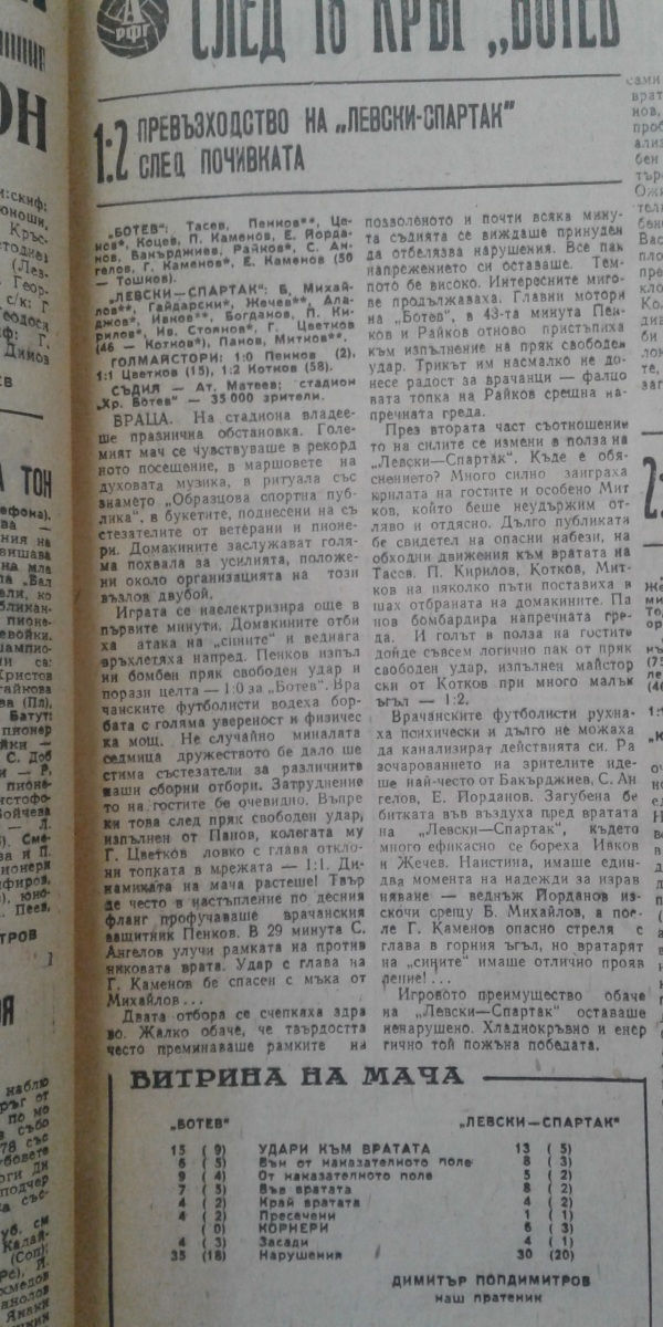 «Ботев» Враца - «Левски-Спартак» София - 1:2