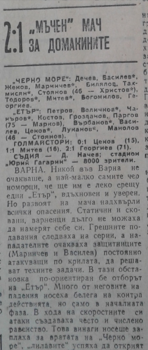 «Черно море» Варна - «Этыр» Велико-Тырново - 2:1
