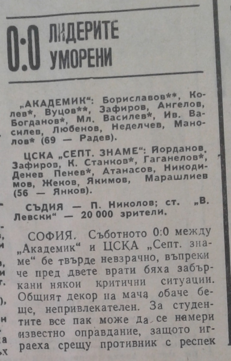 «Академик» София - «ЦСКА Септемврийско Знаме» София - 0:0