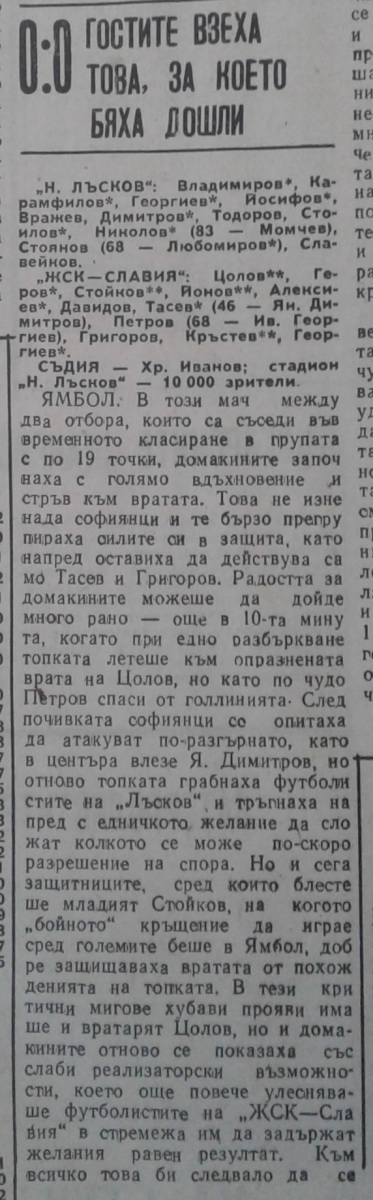 «Николай Лысков» Ямбол - «Славия» София - 0:0