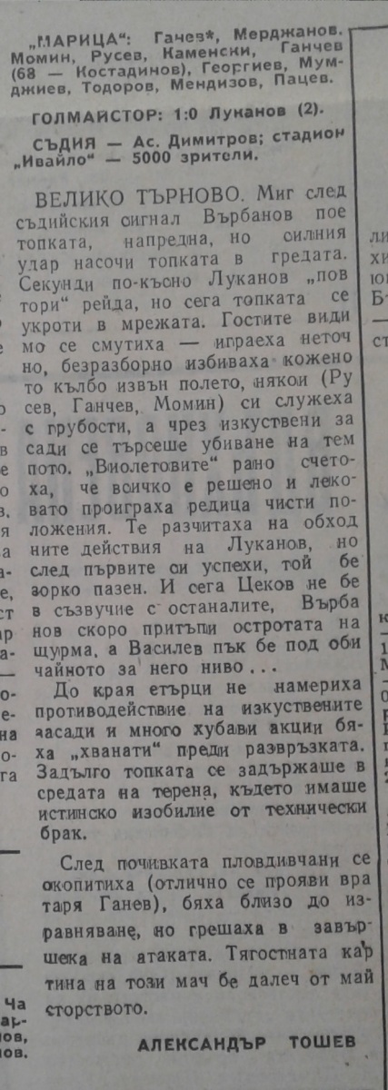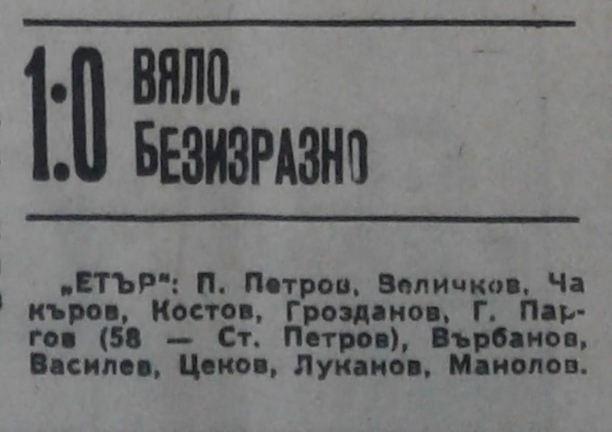 «Этыр» Велико-Тырново - «Марица» Пловдив - 1:0