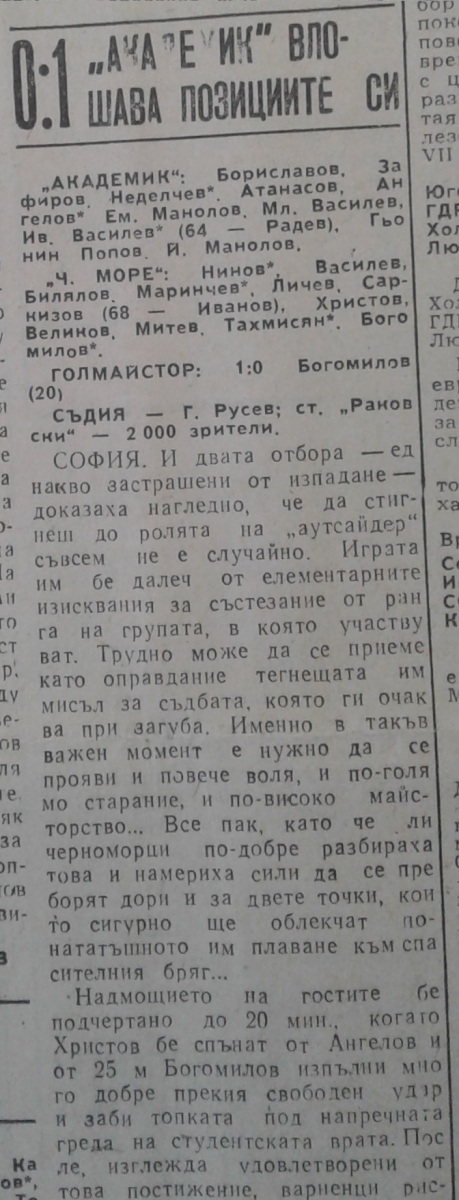 «Академик» София - «Черно море» Варна - 0:1