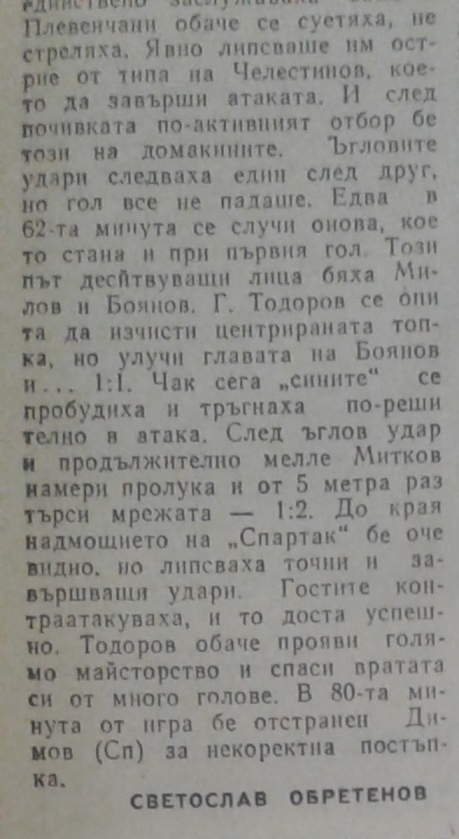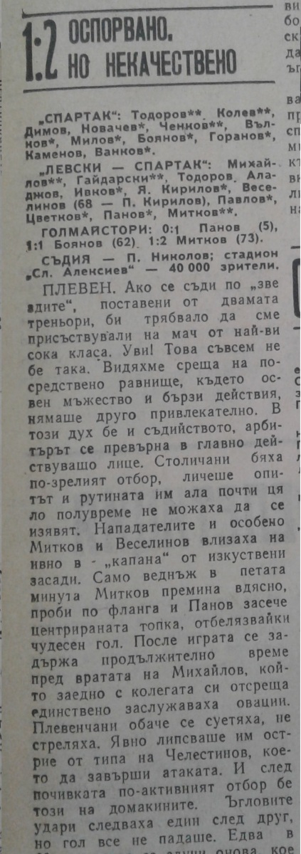 «Спартак» Плевен - «Левски-Спартак» София - 1:2