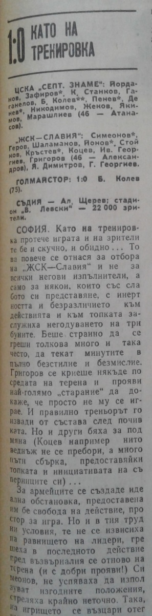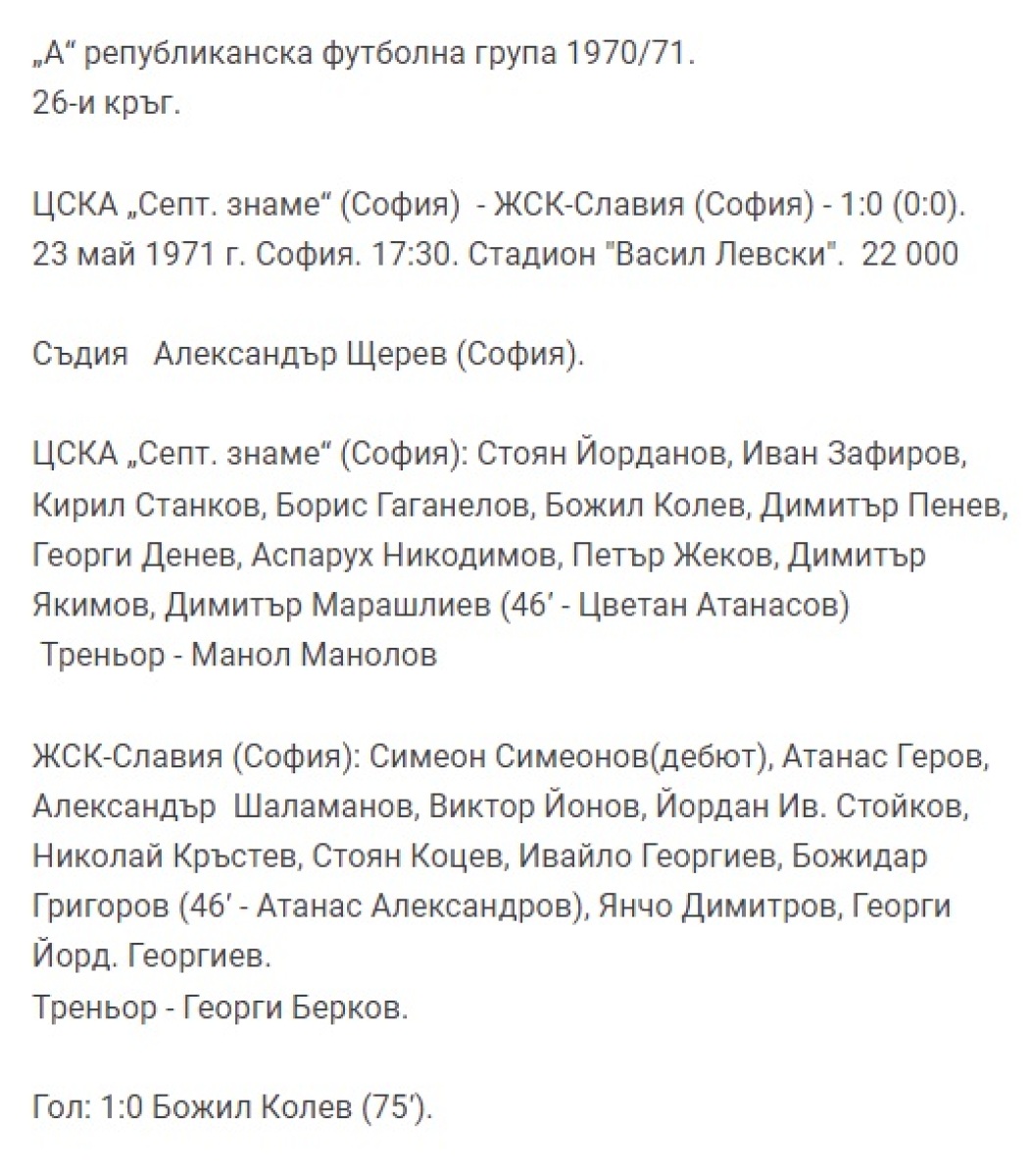 «ЦСКА Септемврийско Знаме» София - «Славия» София - 1:0