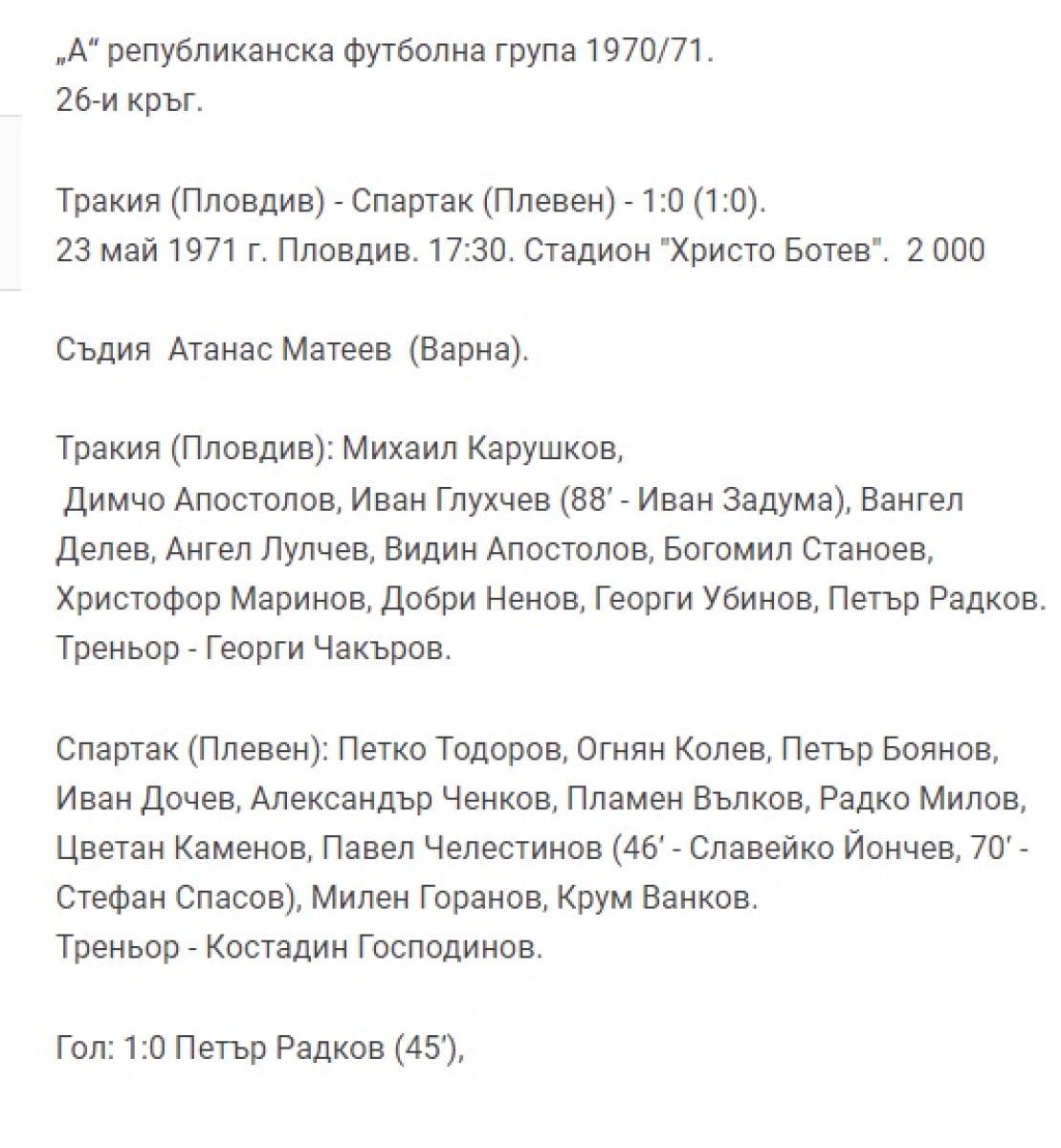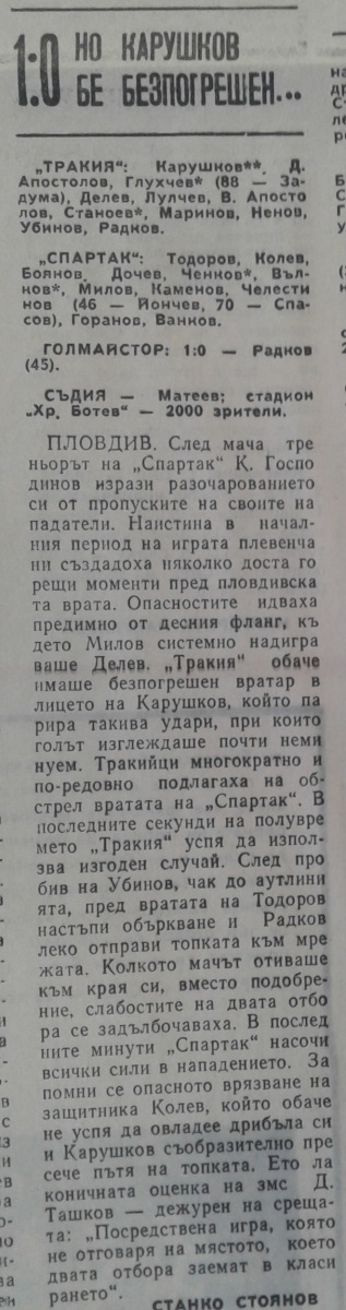 «Тракия» Пловдив - «Спартак» Плевен - 1:0