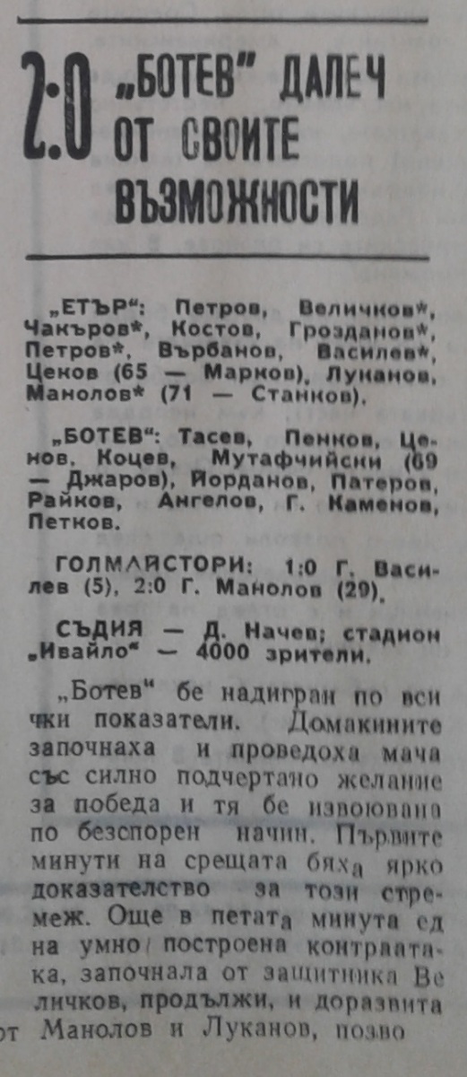 «Этыр» Велико-Тырново - «Ботев» Враца - 2:0