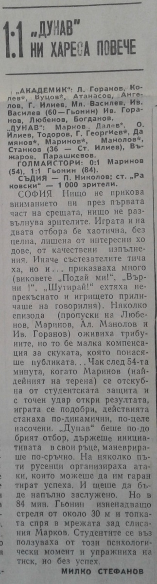 «Академик» София - «Дунав» Русе - 1:1