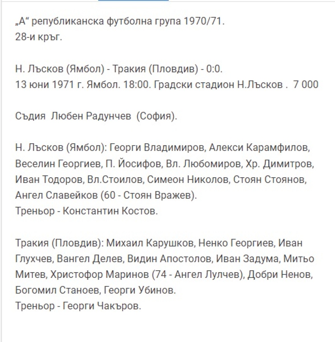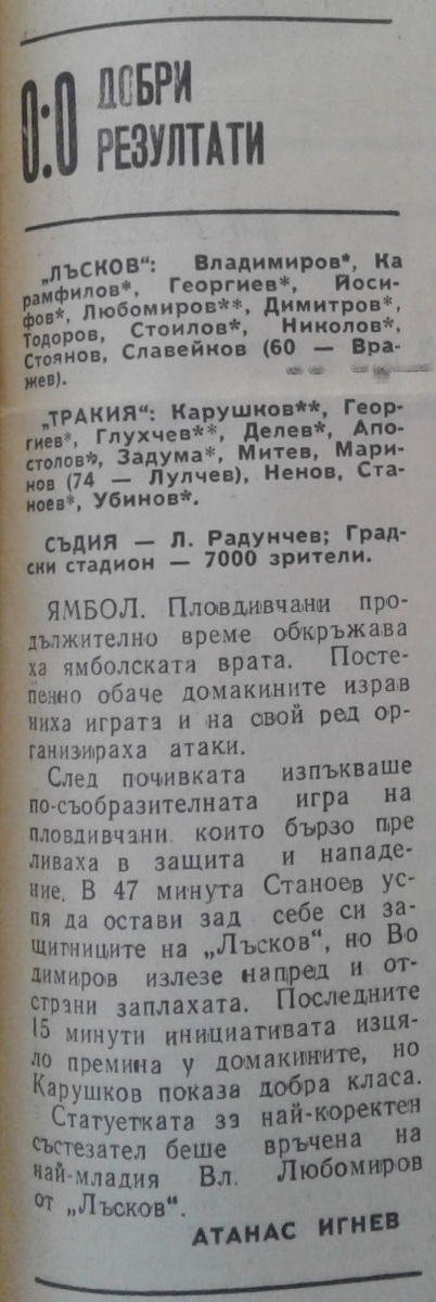 «Николай Лысков» Ямбол - «Тракия» Пловдив - 0:0